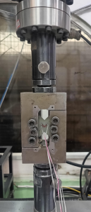 ASTM D3410 – Test method determines the in-plane compressive properties of polymer matrix composite materials reinforced by high-modulus fibers. The composite material forms are limited to continuous-fiber or discontinuous-fiber reinforced composites for which the elastic properties are orthotropic with respect to the test direction. This test procedure introduces the compressive force into the specimen through shear at wedge grip interfaces Properties, in the test direction, that may be obtained from this test method include: Ultimate compressive strength, Ultimate compressive strain, Compressive (linear or chord) modulus of elasticity, Poisson's ratio in compression.